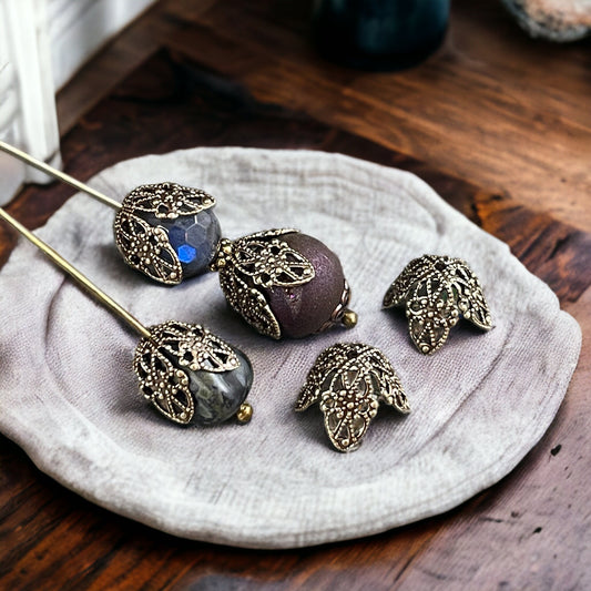 10mm Filigree Bronze Bead Caps Bendable Antiqued Brass Bead Caps (VJS-BB32X) * Qty. 4