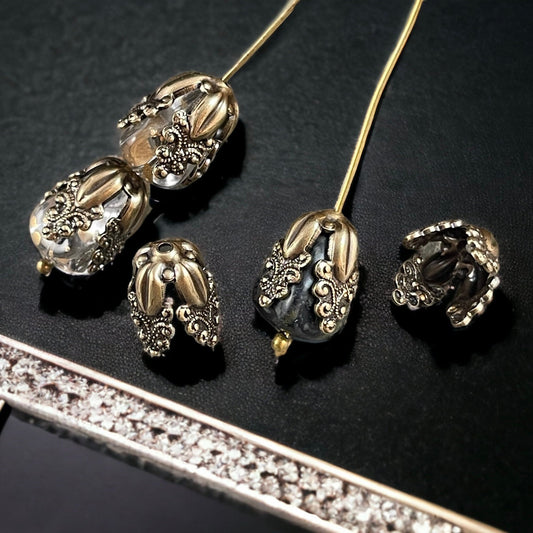 12mm Antiqued Brass Dramatic Bead Caps Victorian Style Ornate Bead Caps Oxidized Brass Bead Caps (VJS/CC7) * Qty. 4