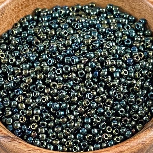11/0 TOHO Seed Beads - 2mm Green Iris Seed Bead, Blue and Green Glass Beads (T388-84) * Qty. 15 grams