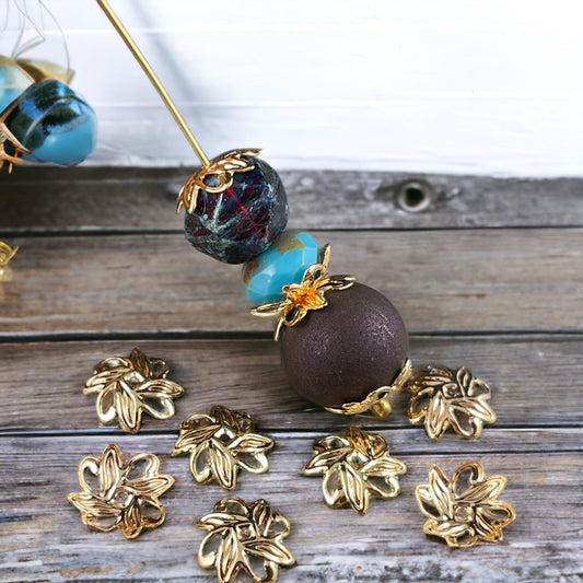 10mm Leaf Bead Caps, Gold-Plated Brass Bead Caps with a Floral Theme (BC-5578) * Qty. 30