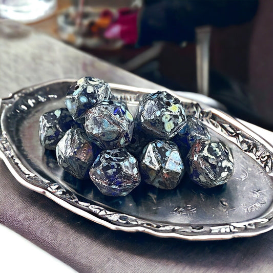 10mm Cobalt Blue Picasso English Cut Czech Glass Beads (EC/N-1249) * 10 Beads