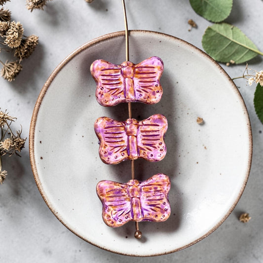 Czech Glass - 16x11mm Butterfly Shape Bead - Thistle with Picasso and Purple Finishes (FLY/N-1536) * 6 Beads
