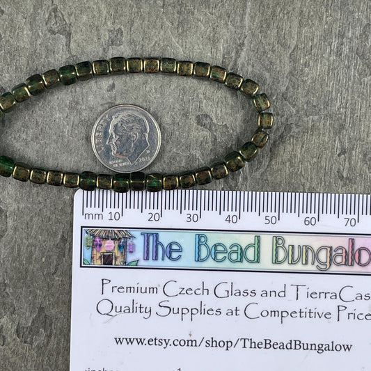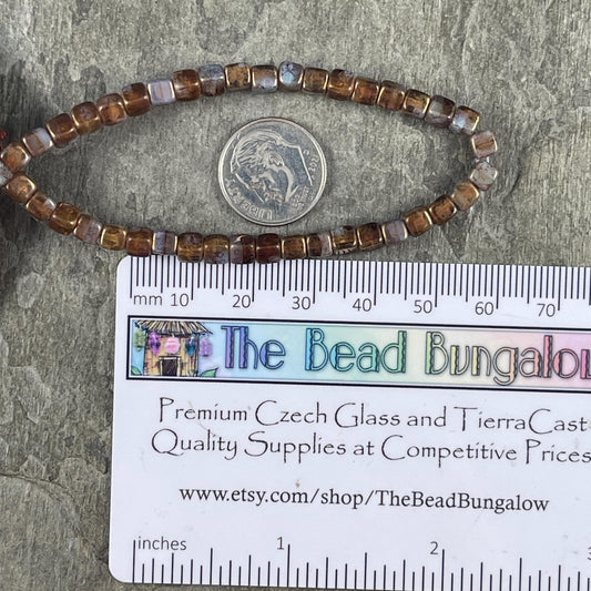 Czech Glass Beads - 4mm Cube, Brown and Slate Blue/Gray with Gold Finish (CUB/N-0813) * Qty. 40