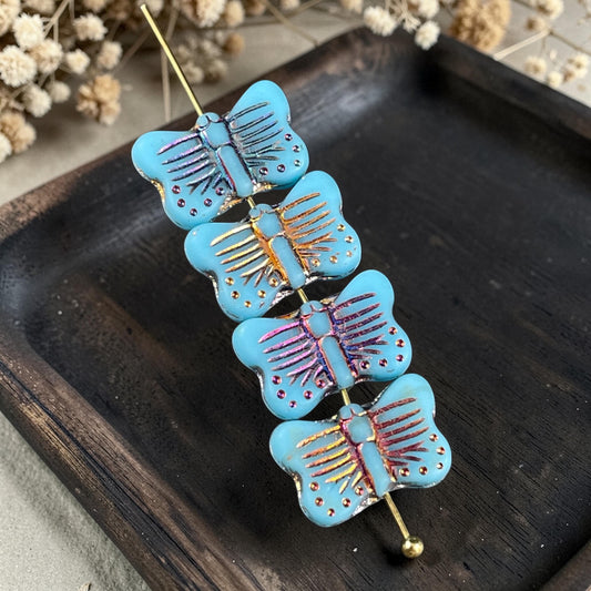 Czech Glass - 16x11mm Butterfly Shape Bead - Sky Blue with Sliperit Finish (FLY/N-0393) * 6 Beads