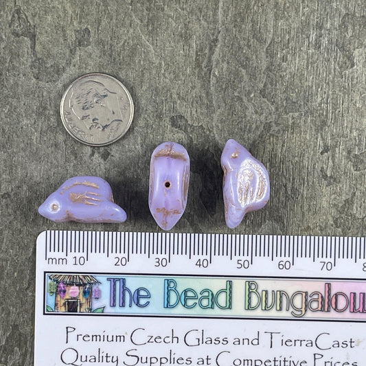Czech Glass Beads - 11x22mm Chunky Bird, Pastel Purple with Gold Wash (N-0592C) * 3 Beads