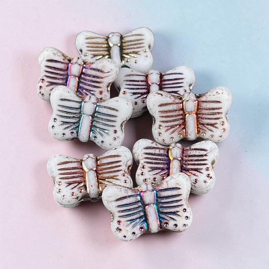 Czech Glass - 16x11mm Butterfly Shape Bead - White with Sliperit Finish (FLY/N-1914) * 6 Beads