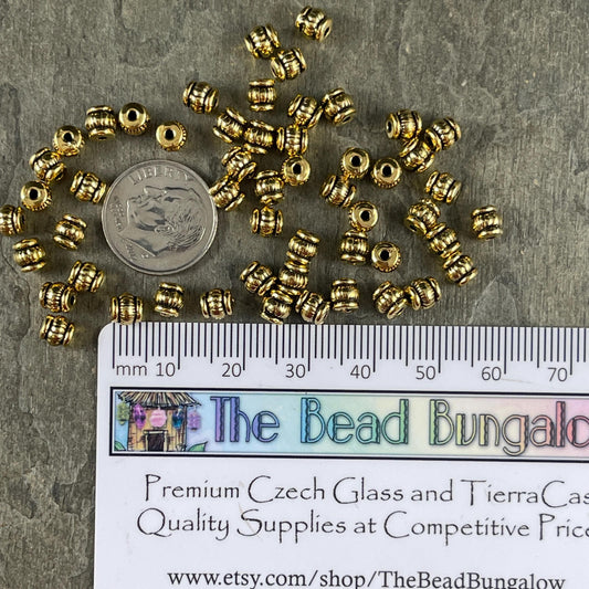 Antiqued Gold Bead, 5x5mm Barrel Bead with 1mm Hole, Nickel Free Metal Spacer Beads (Q043-AG) * Qty. 100