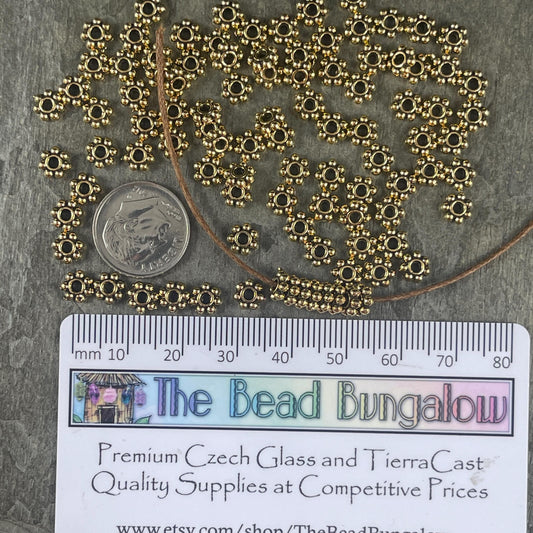 Antiqued Gold Daisy Spacer Beads, 6x2mm Tibetan Style Gold Plated Beads (LF1249Y-01AG) * Qty. 200