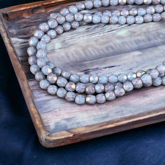 4mm Thistle Picasso Faceted Round Beads ~ Light Opaque Purple Glass with Marbled Lavender Picasso (FP4/N-084) * Qty 50