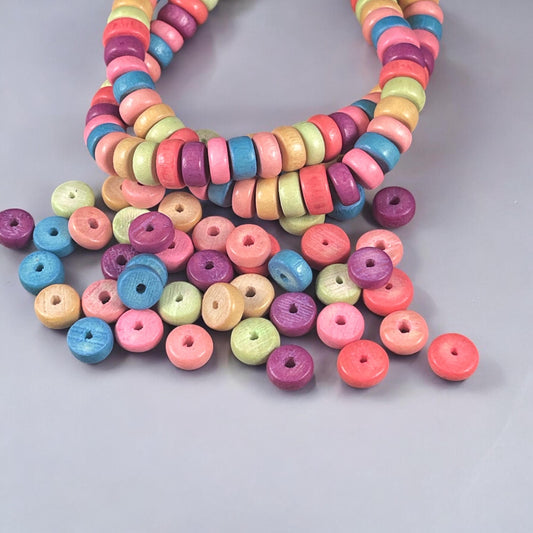 Assorted Bright Colors Wooden Beads, 8mm Wooden Rondelle Bead, Multi-Colored Wooden Spacer Beads (Bright) * 15" Strand