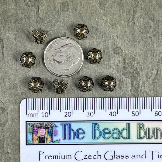 7mm Oxidized Brass Filigree Bead Caps ~ 7mm Victorian Style Brass Bead Caps (VJS-R589) * Qty. 4