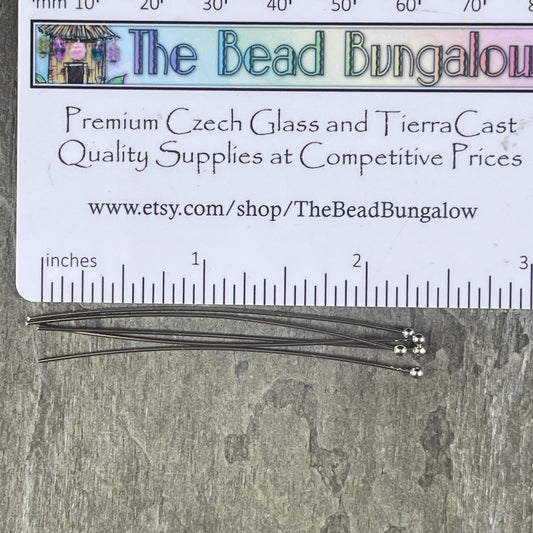 Antiqued Silver Ball Headpins ~ 2 1/4" 22g Ball Headpins ~ Platinum Plated Brass Head Pins (PH-BHP-P) * Qty. 100