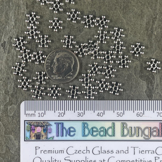 Antiqued Silver Snowflake Bead, 7.5mm diameter with 1mm Hole, Silver Metal Spacer Beads (A402) * Qty. 200