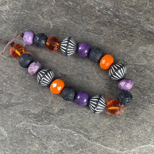 Black, Orange and Purple Glass Beads, Halloween Bead Mix, 6” Strand, Czech Glass Bead Assortment (BBEM-930.01)