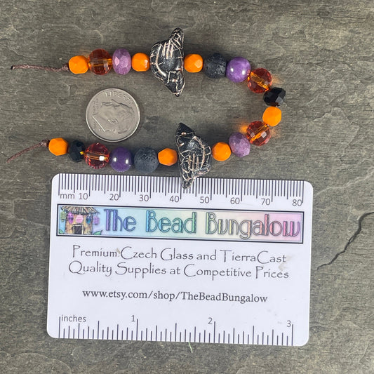 Black, Orange and Purple Glass Beads, Black Bird Halloween Bead Mix, 6” Strand, Czech Glass Bead Assortment (BBEM-930.02)