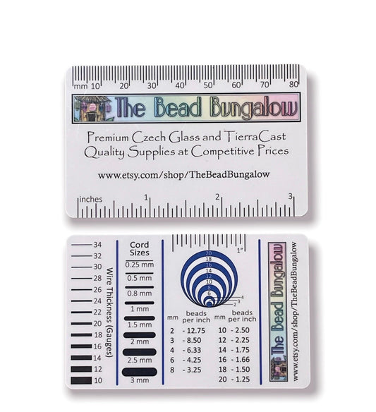 Jewelry Makers Tool ~ Measuring Guide (Credit Card Size) for Measuring Beads, Wire, Cord ~ Beads per Inch, Centimeters, Millimeters, Gauges