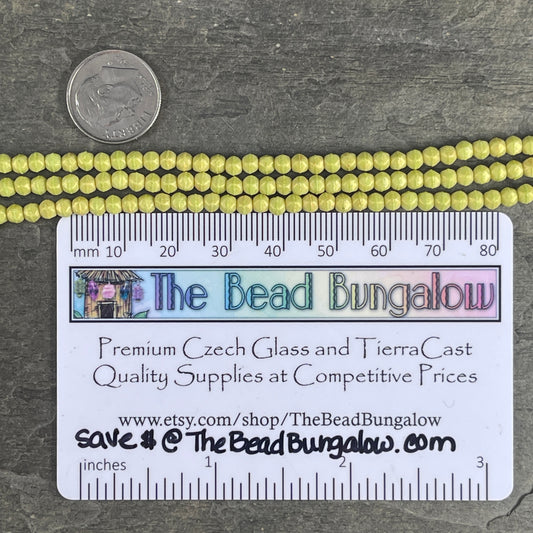 3mm English Cut Honeydew Luster Czech Glass Beads, Small Bright Green Beads (EC3/SM-PS1010) * Qty. 50