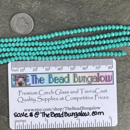 3mm English Cut Turquoise Czech Glass Beads, Small Opaque Turquoise Blue Faceted Cube Spacer (EC/SM-6313) * Qty. 50
