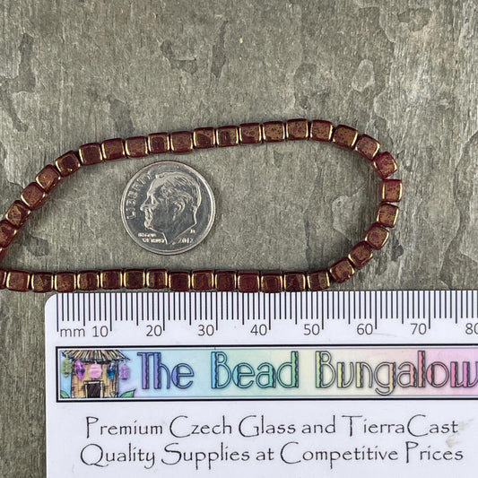 4mm Czech Glass Cube Beads, Transparent Red Czech Glass Beads with Gold Luster Finish (CUB/N-0325) * Qty. 40
