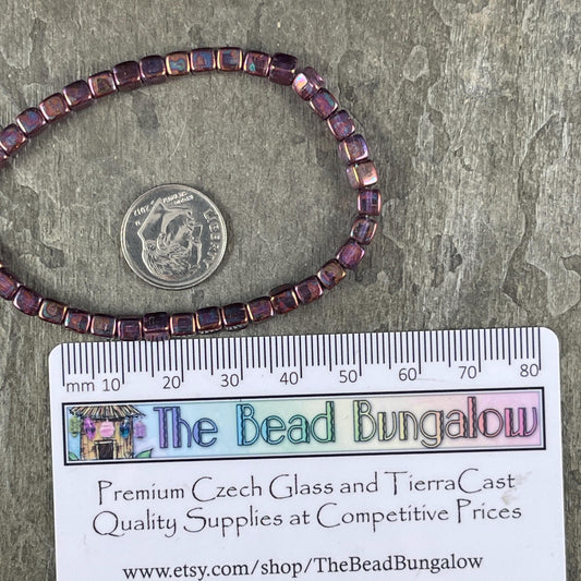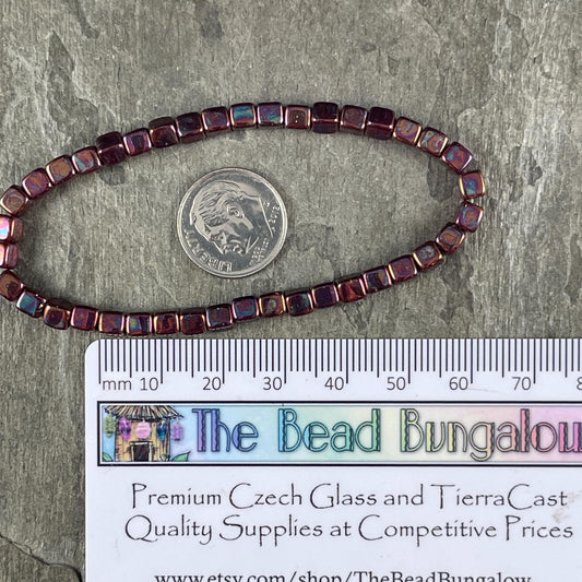 4mm Czech Glass Cube Beads, Metallic Rust Czech Glass Beads with Purple Iridescent Finish (CUB/N-0917) * Qty. 40