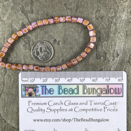 4mm Czech Glass Cube Beads, Thistle Purple Czech Glass Beads with Rust Picasso Finish (CUB/N-0818) * Qty. 40