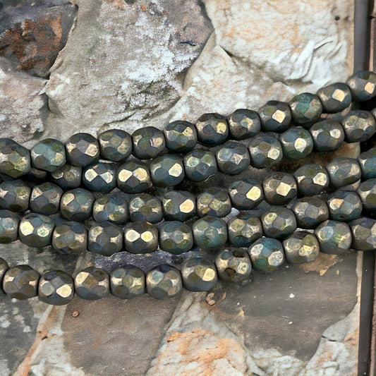 4mm Turquoise with Matte Copper Picasso Finish, 4mm Czech Glass Beads - 4mm Faceted Round Beads (FP4/SM-CT6313) * Qty. 50