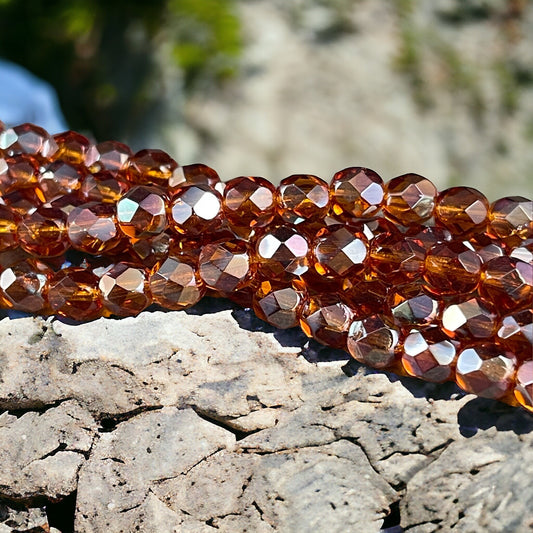 Topaz Celsian 6mm Czech Glass Beads 6mm Faceted Round Fire Polished Beads - Dark Topaz with Celsian Finish (FP6/SM-Z1009) * Qty. 25