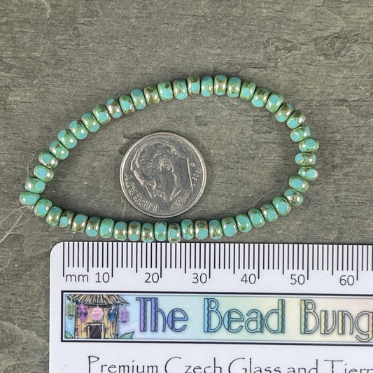 Turquoise Picasso 4x2mm Rondelle Blue and Bronze Czech Glass Beads - Turquoise Bronze Picasso Heishi Rondelle (RD4/SM-BT6313) * Qty. 100