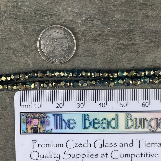 Turquoise with Bronze Picasso Finish, 4mm Czech Glass Fire Polished Faceted Round Beads, Persian Turquoise Picasso (FP4/SM-BT6315) * Qty. 50