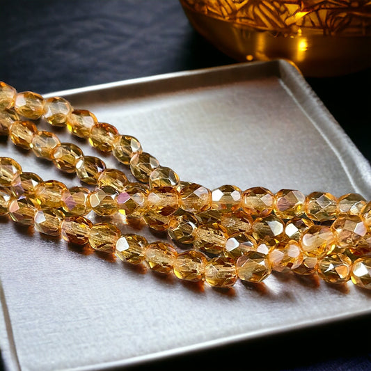 Transparent Gold Beads - 6mm Golden Celsian Czech Glass Beads - Light Topaz Celsian Faceted Round Bead (FP6/SM-Z1002) * Qty. 25