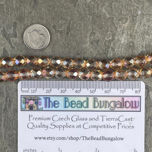Transparent Celsian 8mm Faceted Czech Glass Beads, Golden Transparent Beads (FP8/SM-Z0003 ) * Qty. 25