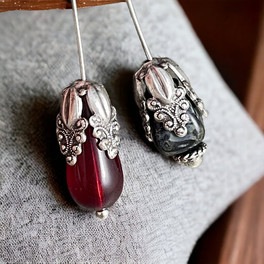 Victorian Style 12mm Antiqued Silver Bead Cap, Dramatic Tall Bead Caps, Ornate Oxidized Silver Bead Caps (VJS/A905) * Qty. 4