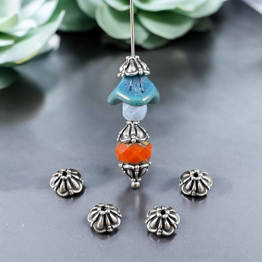 8mm Tiffany Bead Caps Decorative Antiqued Fine Silver Plated Bead Caps (PF/778-77) * Qty. 6