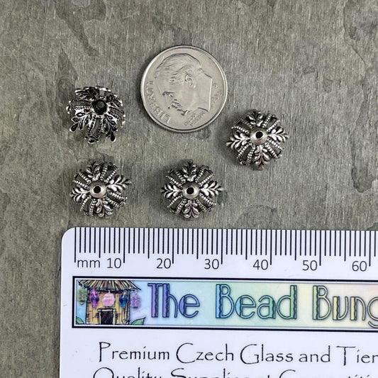 Antiqued Silver Bead Caps ~ Filigree Flower Petals, 9mm Domed Nickel Free Bead Caps (LF0761Y-NF) * Qty. 100