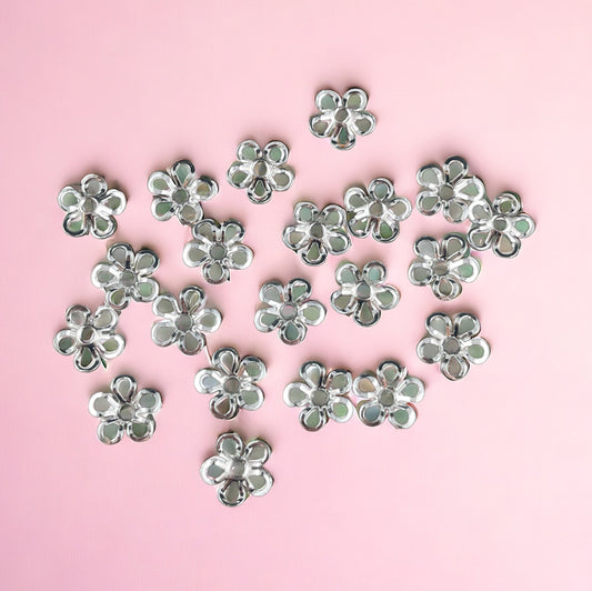 6-Petal Flower Bead Caps, Open Curved Petals, 9mm Silver Plated Brass Bead Caps (Z030-13C) * Qty. 24
