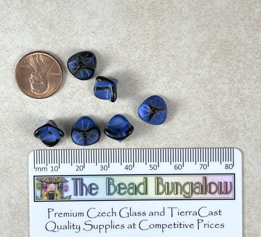 Slate Blue 3-Petal Flower Beads ~ Czech Glass Beads ~ 12x9mm Dark Blue Glass Flower Beads (FLLB/RJ-1066) * Qty. 8