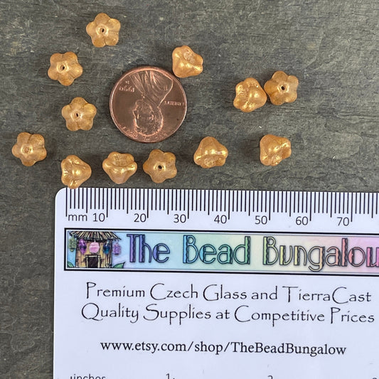 Czech Glass Beads - 6x8mm Golden Yellow Shimmer Glass Bell Flower ~ Yellow Flower Beads (BF/SM-S18C7010) * Qty. 25