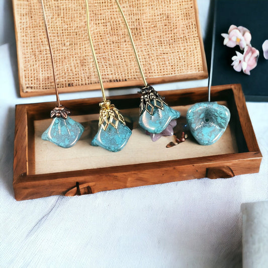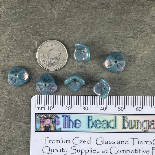 Czech Glass Beads - Opaque Blue 3-Petal Flower Beads, 12x9mm Turquoise with Marbled Picasso (FLLB/RJ-1056) * Qty. 12
