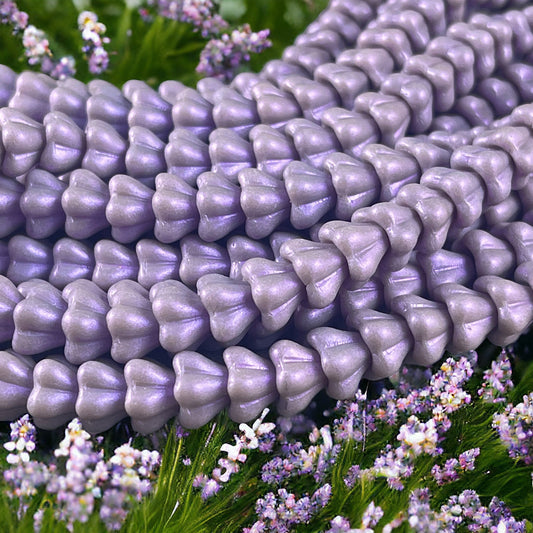Czech Glass Beads - Pale Purple Bell Flower, 8x6mm Lavender Flower with Opalescent Finish (BF/SM-S19C23020) * Qty. 25