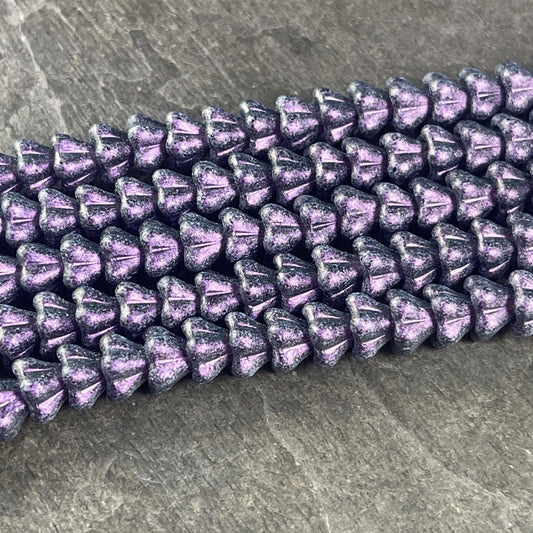 Czech Glass Beads - 8x6mm Purple Bell Flower, Opaque Tanzanite with Rose Shimmer Finish (BF/SM-S16C2051) * Qty. 25
