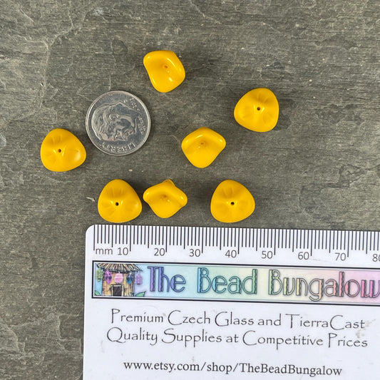 Czech Glass Beads - Opaque Dark Yellow Flower, 3-Petal Flower Beads, 12x9mm Bell Flower Bead (FLLB/RJ-1090) * Qty. 12