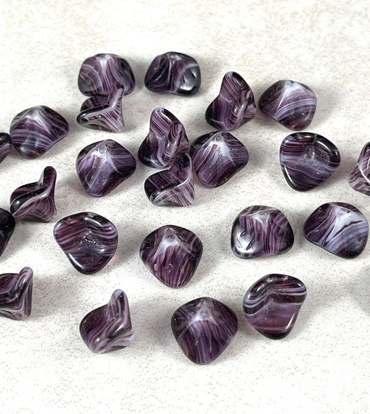 Two-Tone Purple 3-Petal Flower Beads Glass Flower Beads Purple and White Striped Flower 12x9mm Bell Flower Bead (FLLB/RJ-1030) * Qty. 8