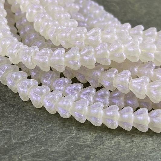 Barely Pink Opalescent Czech Glass Flower Beads Pale Pink Opalescent Bell Flower 6x8mm Pink Flower Beads (BF/SM-S19C70100) - Qty 12