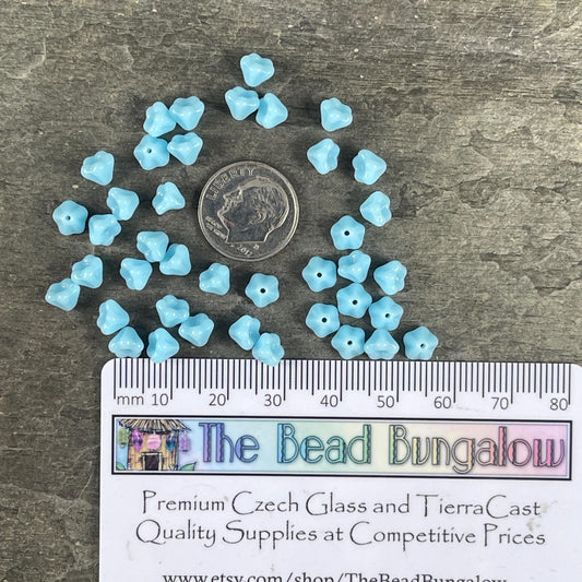Light Blue Czech Glass Bead, 6x4mm Baby Bell Flower, Opaque Sky Blue Bell Flower (FL/6302) * Qty. 50