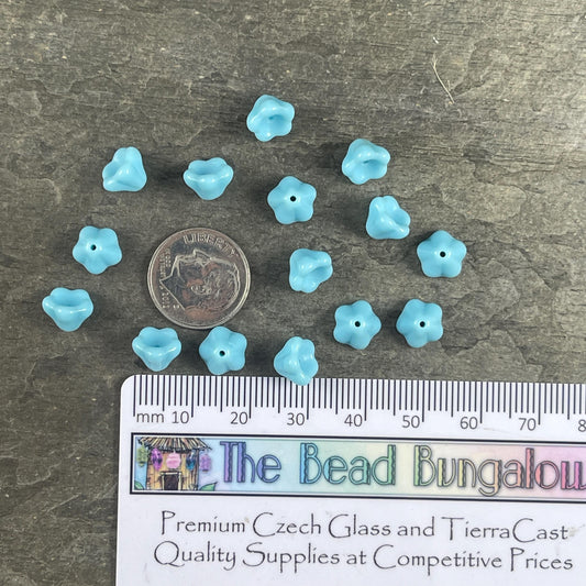 Light Blue Czech Glass Bead, 8x6mm Baby Bell Flower, Opaque Sky Blue Bell Flower (FL/6302) * Qty. 24