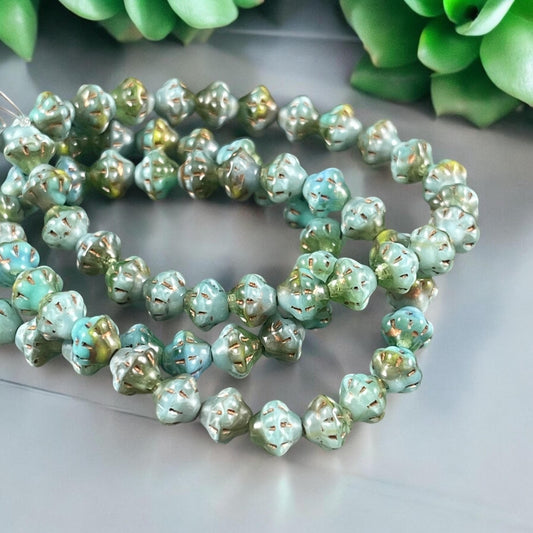 Sea Green and Olive Green Czech Glass Beads, 6mm Saturn Bicone (PS6/RJ-5229) * 25 Beads