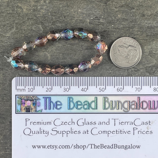 Czech Glass Beads, Cathedral 8x6mm Carved Oval Bicone, Transparent Glass with Copper and AB Finishes (CTD/N-026) * Qty. 15