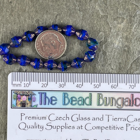 Czech Glass Beads, Royal Blue Cathedral 8x6mm Carved Oval Bicone (CTD/N-051) * Qty. 15