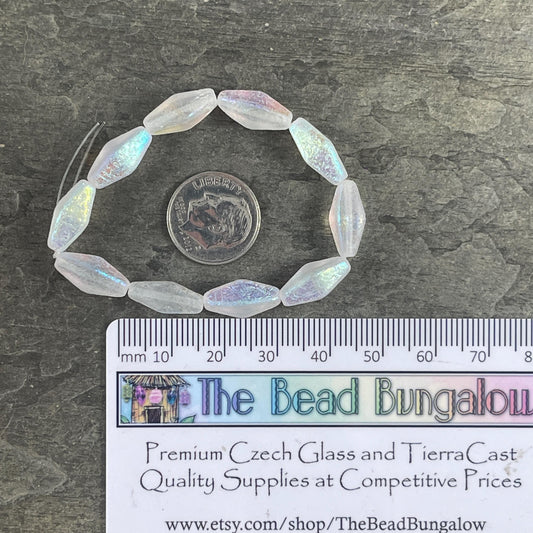 Czech Glass Beads - 14x7mm Rhombus Beads, Transparent White, Etched withAB Finish (RHO/N-2084) * Qty. 10 Beads
