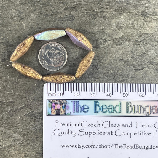 20x9mm Golden Rhombus Beads Elongated Spindle Beads Matte Pale Pink Czech Glass Beads with Gold Finish (RHO/1881B) * Qty. 6 Beads